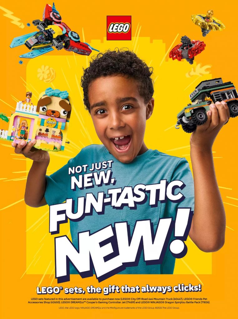 Lego uses bold colour and playful typography to create a fun and energetic ad.