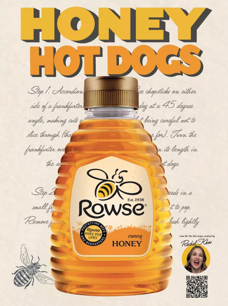 We loved the long form copy on these ads as well as the use of QR to link to recipes. Honey hot dogs? Yes please.