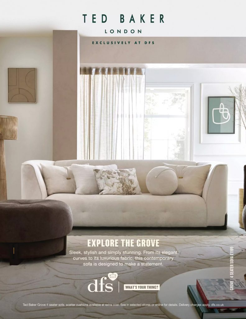 Great positioning in both homes and lifestyle brands. One comfy looking sofa.