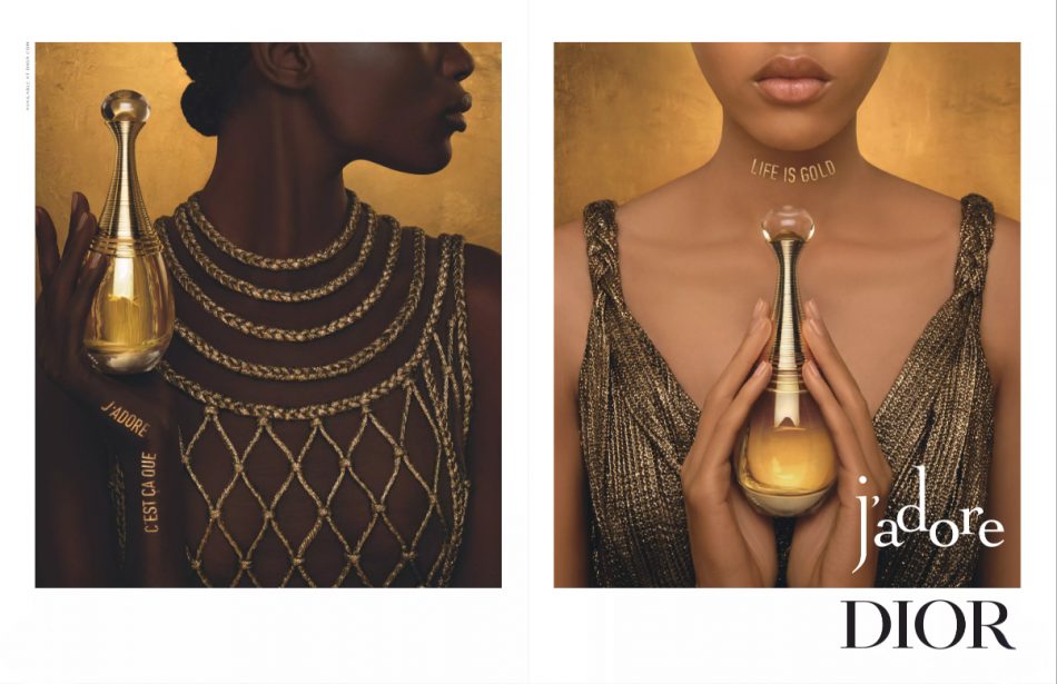 Great WorkAds Dior: J’adore This striking DPS for Dior’s J’adore caught our attention as we leafed through the pages of Vogue. The golden tones had us daydreaming of warm summer evenings.