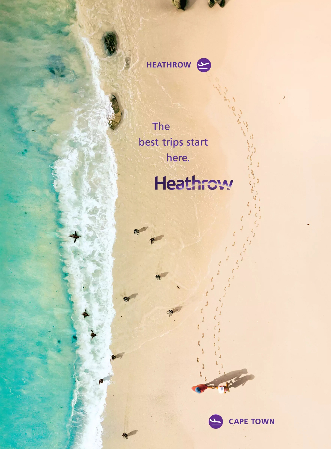 Great WorkAds Heathrow Airport We can already feel the sun on our face, and the sea breeze in our hair. Whisk us away Heathrow.