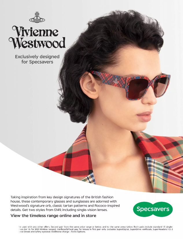 Great WorkAds Specsavers: Vivienne Westwood Unmistakably Westwood in this great collab with Spec Savers spotted in Cosmo and Harper’s Bazaar. A timely reminder we really do need to upgrade our face furniture for A/W22.