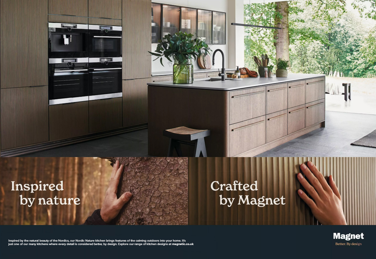 A double page spread you want to run your hand across. Loving the wood finish in this Magnet kitchen ad.