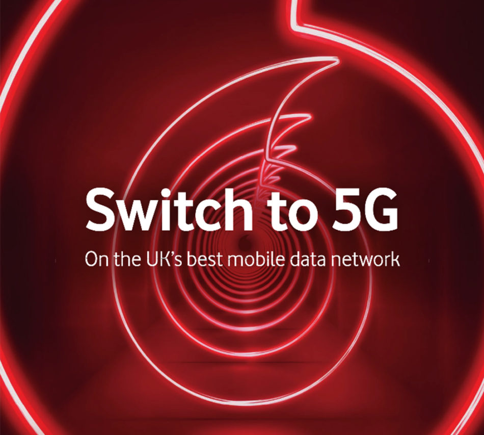 Great WorkAds Vodfone: Switch to 5G Vodafone branding vortex pulls you in to urge you to switch mobile data network in Time Out