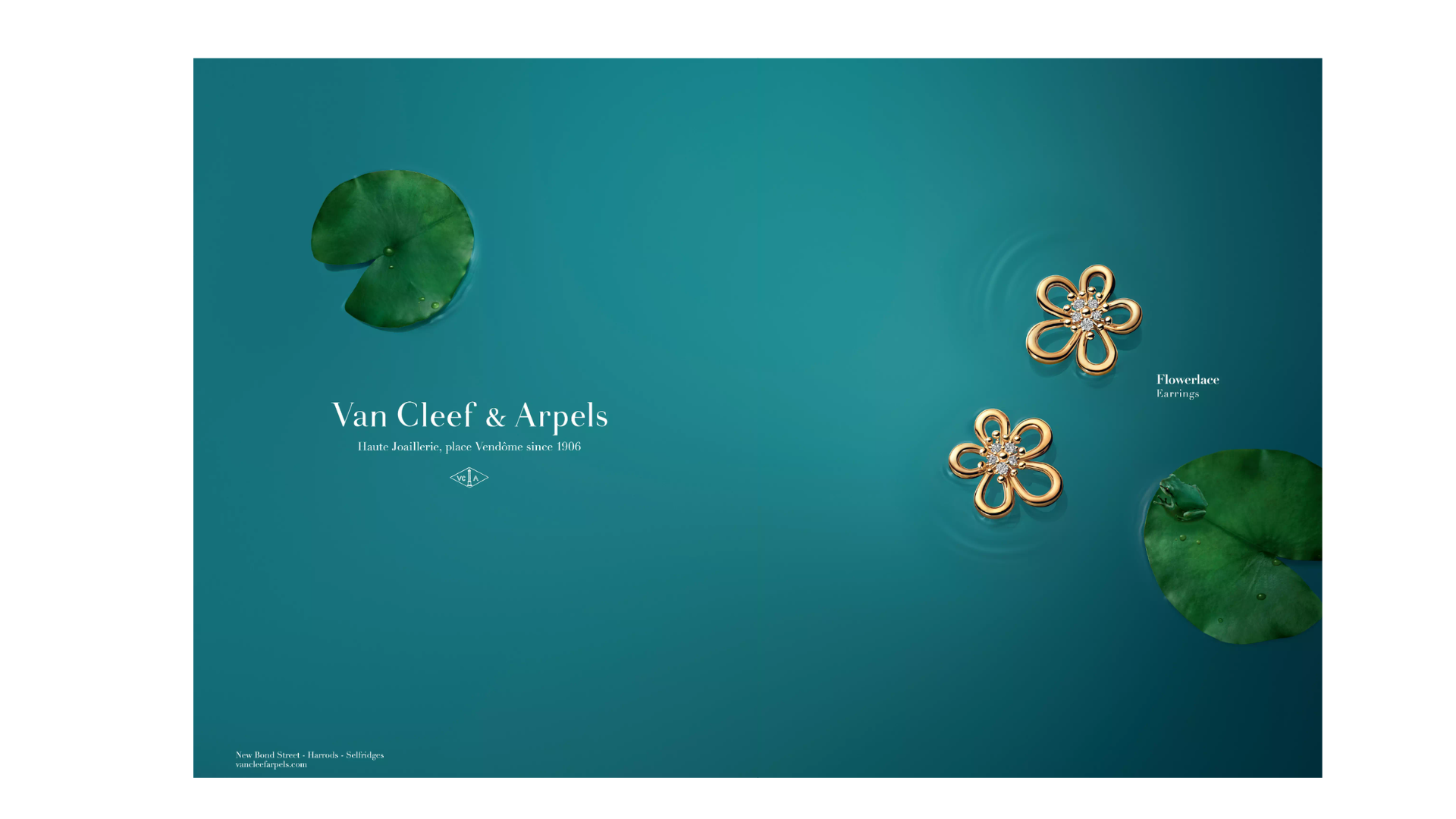 Agency: Essencemediacom London Country: United Kingdom Source: Harper's Bazaar, Wallpaper Date: 14 October 2025 Great WorkAds Van Cleef & Arpels Great use of a double-page spread, turning it into a lily pond.
