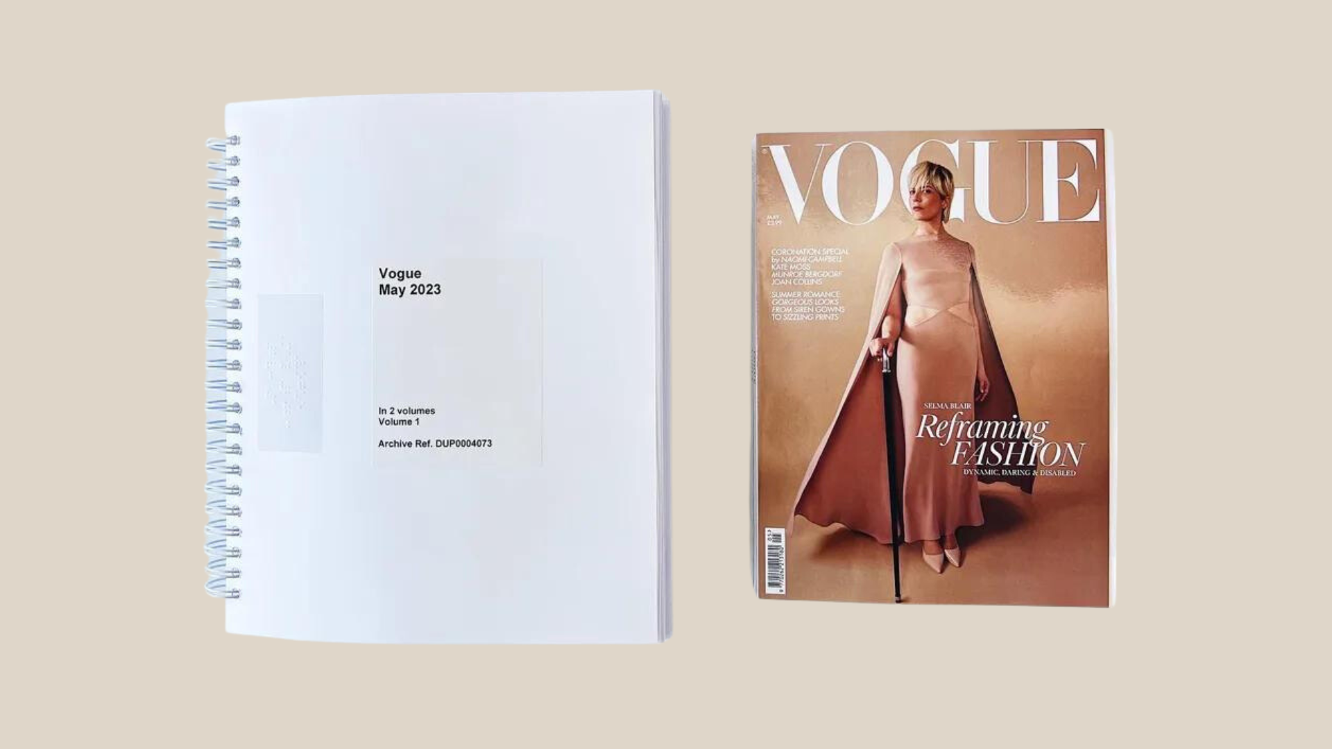 The Braille and audio formats of the May 2023 issue will be available from 5 May. Additionally, all issues of British Vogue for the next year will be available in audio format and for Braille readers in physical and digital formats.