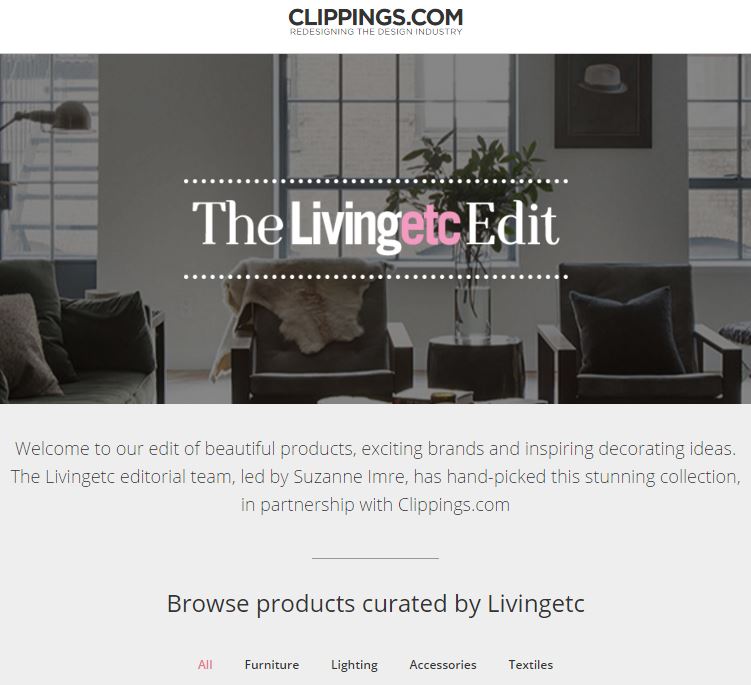 The Livingetc Edit @ Clippings.com will also tap into Livingetc’s editorial talents and interiors expertise by featuring inspirational decorating ideas and designer profiles.