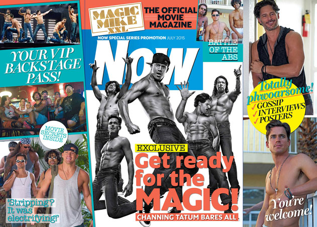 Caroline Millington, Editor of the Magic Mike XXL special, said: “As the most hotly-anticipated summer movie, Now readers will be thrilled to rip open our cover to see the hot cast underneath. There’s more flesh packed into the 16-special pages than on Miami Beach! You’re welcome!”