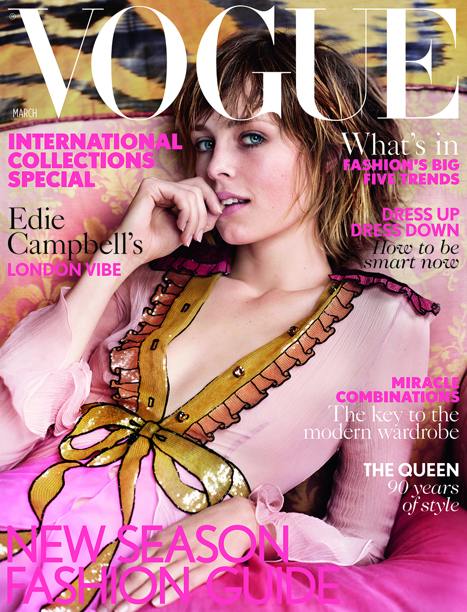 On sale from today, the issue is the International Collections Special and features Edie Campbell on the cover.